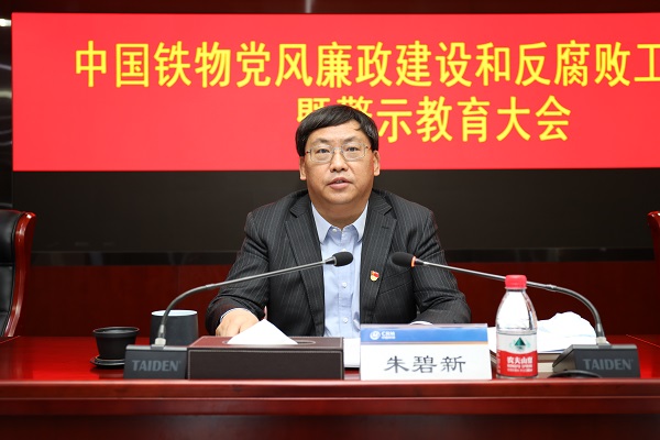 4月3日,中国铁物以视频会议方式召开2020年党风廉政建设和反腐败工作会议暨警示教育大会,全面贯彻落实十九届中央纪委四次全会、国资委党风廉政建设和反腐败工作会议暨警示教育大会精神,开展警示教育,总结2019年中国铁物党风廉政建设和反腐败工作,安排部署2020年工作。中国铁物党委书记、董事长朱碧新出席会议并讲话,党委副书记、总经理廖家生传达十九届中央纪委四次全会、国资委党风廉政建设和反腐败工作会议暨警示教育大会精神,党委常委、纪委书记吴春权作工作报告。会议由党委常委、副总经理徐增堂主持。